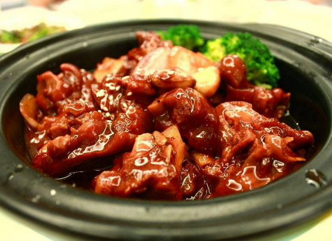 6.白糖溶化后会起泡泡,在泡泡最丰富的时候加入洗好的猪蹄,翻炒至每块猪蹄都裹上糖色。