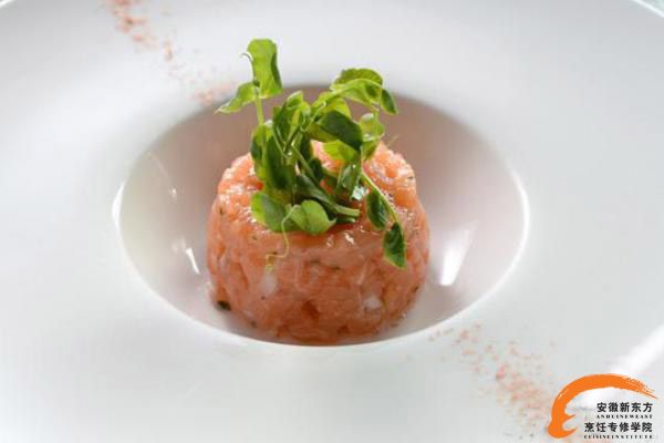 1、首先将三文鱼切成小丁,小葱和洋葱切末